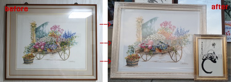 오래된 십자수액자 몰딩을 깔끔하게 교체했습니다.